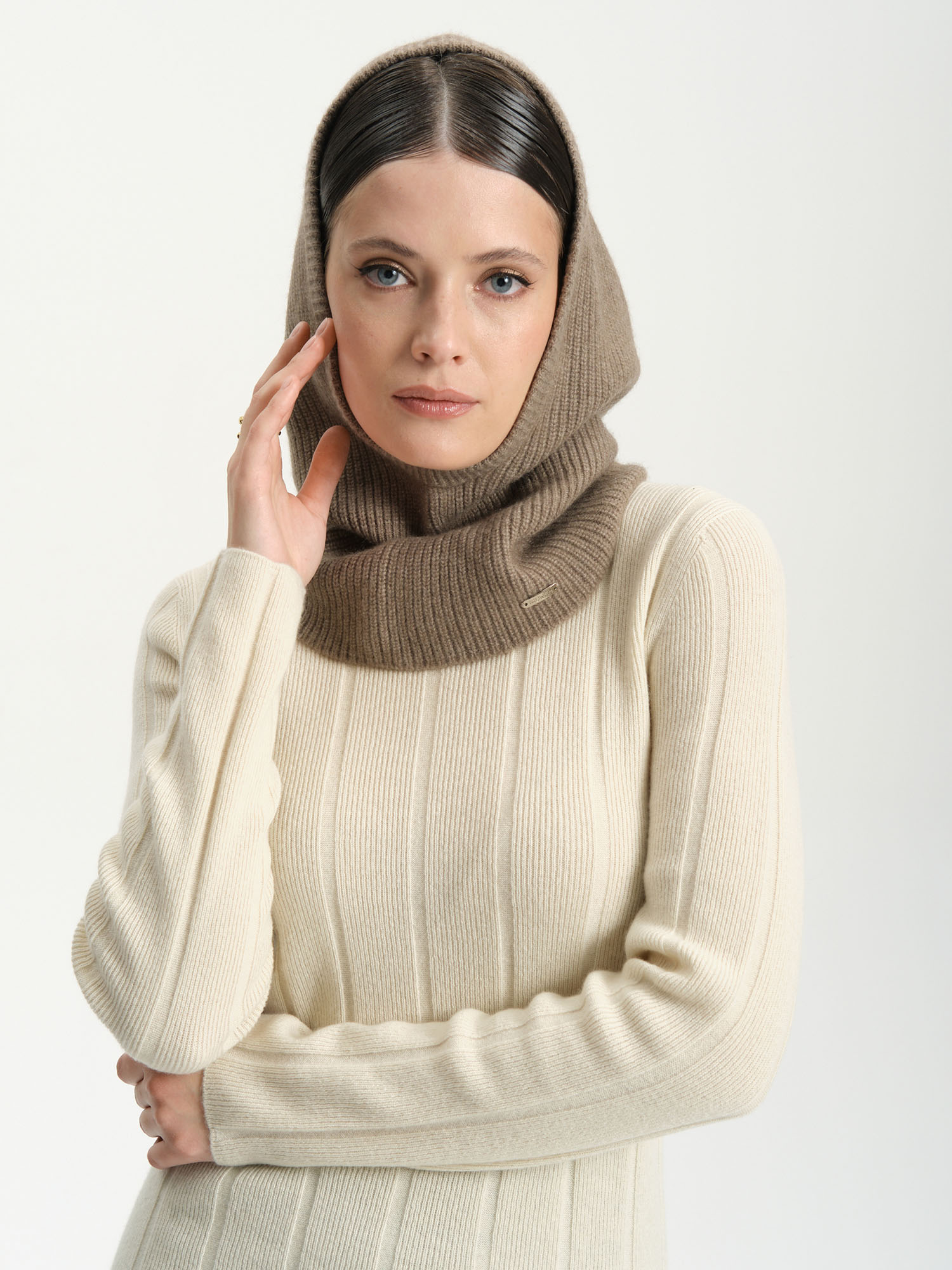 Балаклава из кашемира мягкая и тёплая. Смотрится в этом цвете капучино эффектно!
