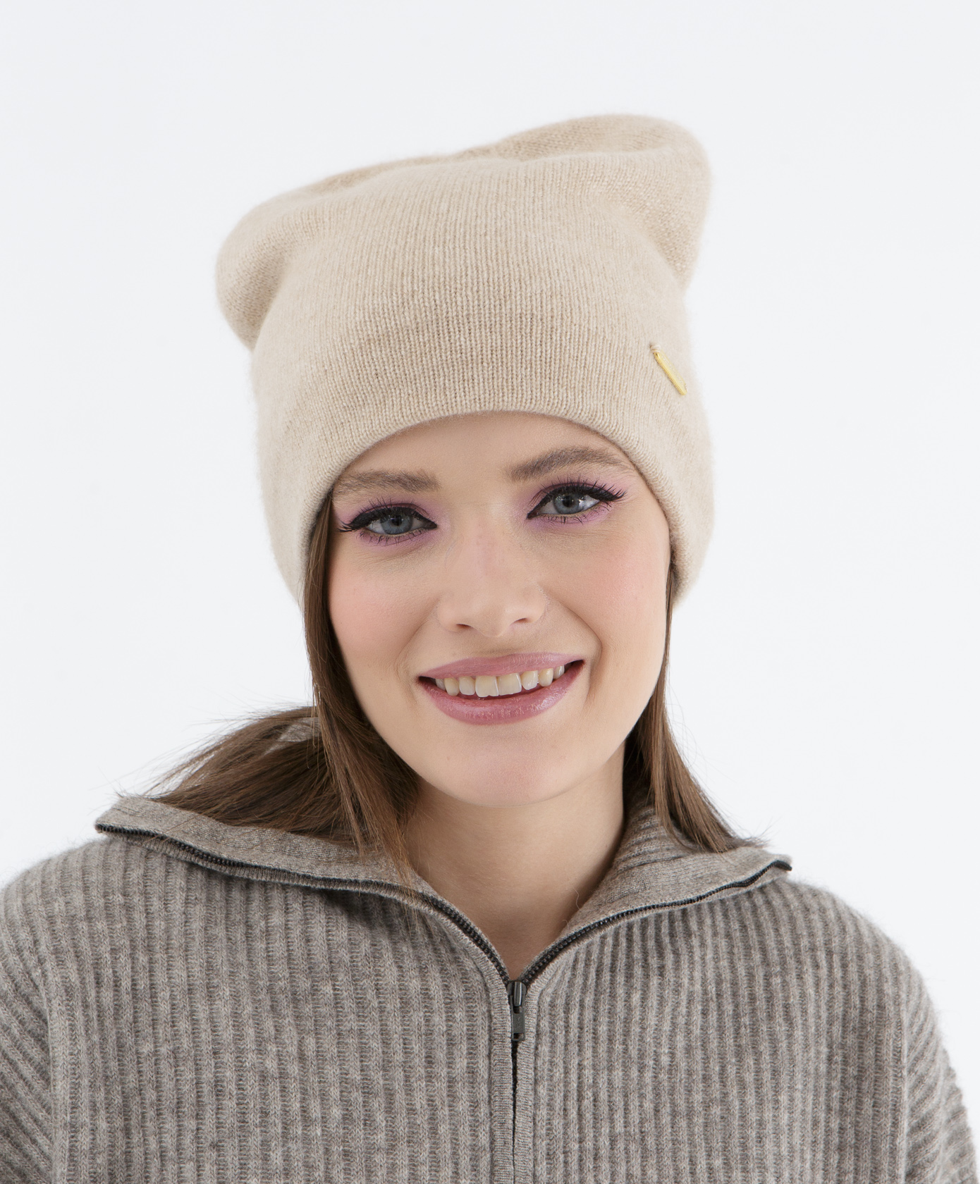 Шапка кашемировая двойная UL бежевая