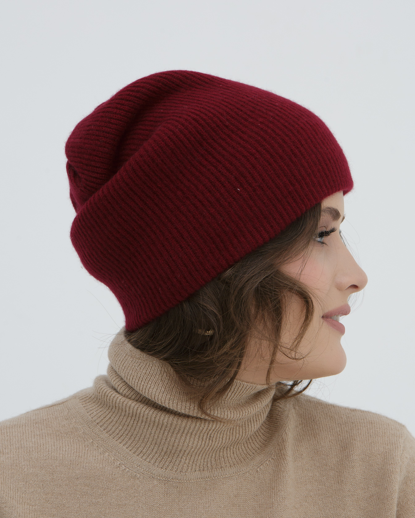 Шапка кашемировая двойная бордовая
