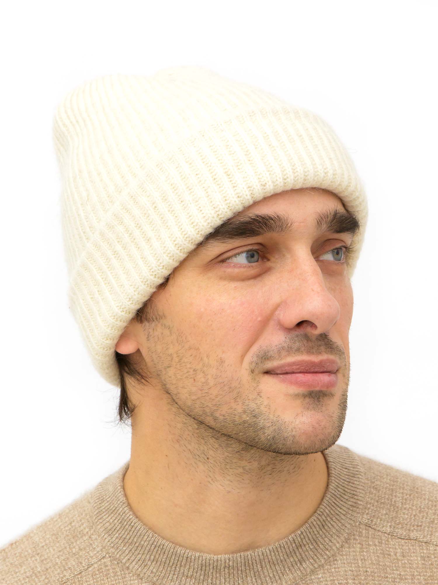 Шапка двойная из шерсти BS кремовая