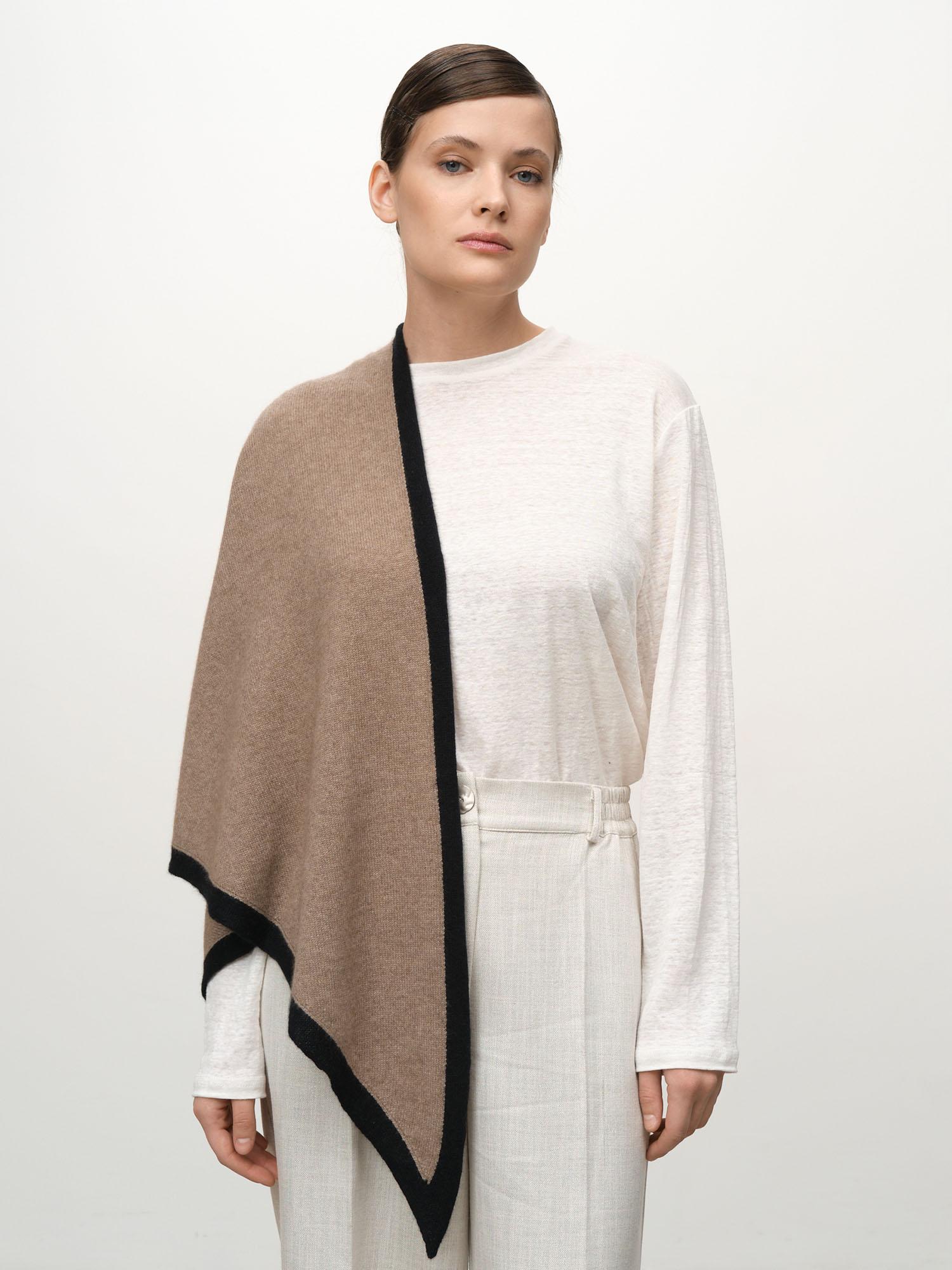 Кашемировая косынка в оттенке капучино с черным – роскошный аксессуар для завершения вашего образа.