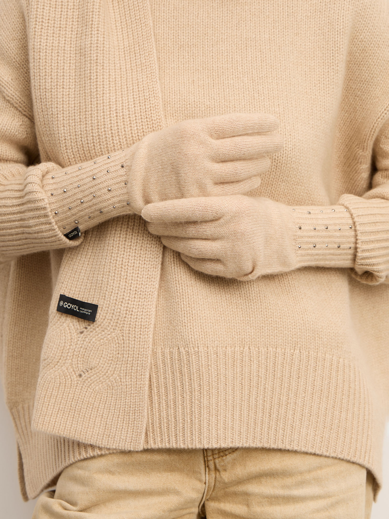 Бежевые кашемировые перчатки с декоративными стразами — это изысканное сочетание уюта и деликатного сияния. Они мягко окутывают руки теплом, а аккуратный блеск на манжетах добавляет образу женственности и элегантного акцента. Идеальный аксессуар для тех, кто ценит комфорт и стильные детали.