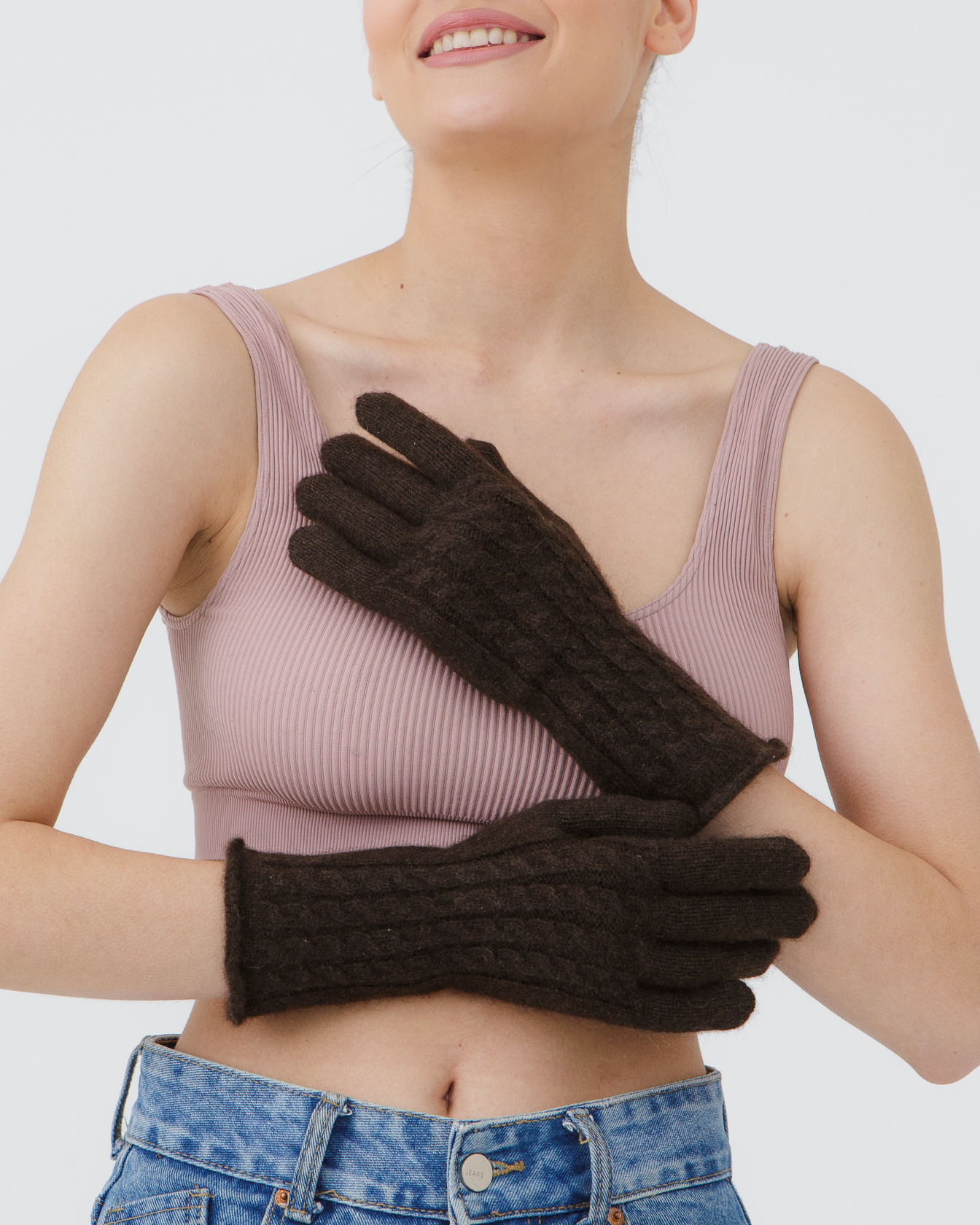 Перчатки из пуха яка 31124 темно-коричневые