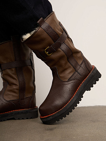 Модель с высоким голенищем и лаконичным силуэтом. Сочетание гладкой кожи и вставок придаёт обуви выразительный и современный вид.