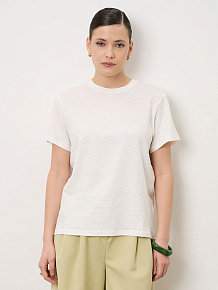 Короткий рукав, аккуратная обработка горловины, мягкая фактура ткани, ровные швы, комфортная посадка.