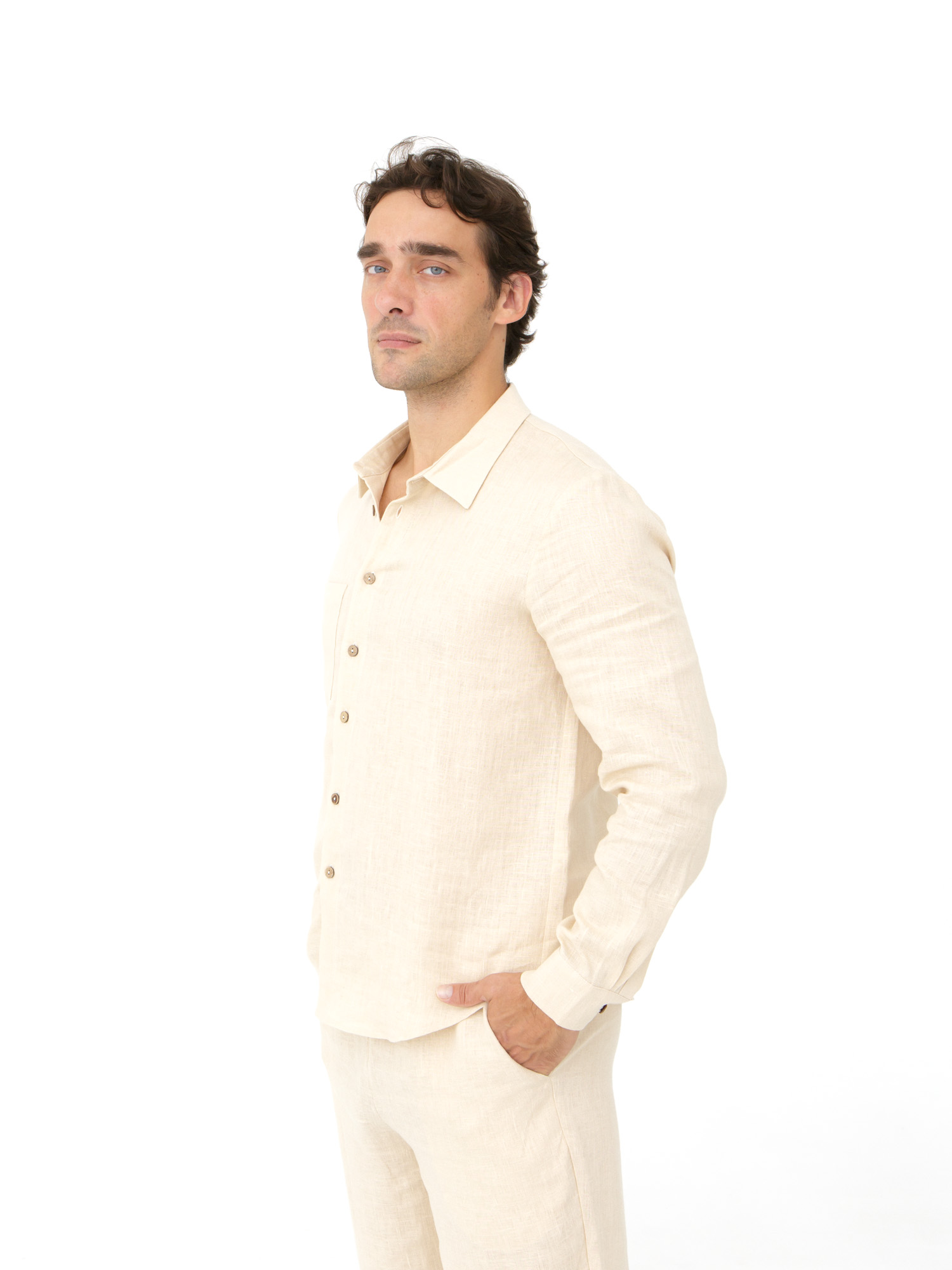 100% натуральный лен — экологичный, гипоаллергенный материал с высокой воздухопроницаемостью. Обладает естественной терморегуляцией: сохраняет комфорт в жаркую погоду и позволяет коже дышать. Лен прочен и долговечен, со временем становится мягче и приятнее к телу .