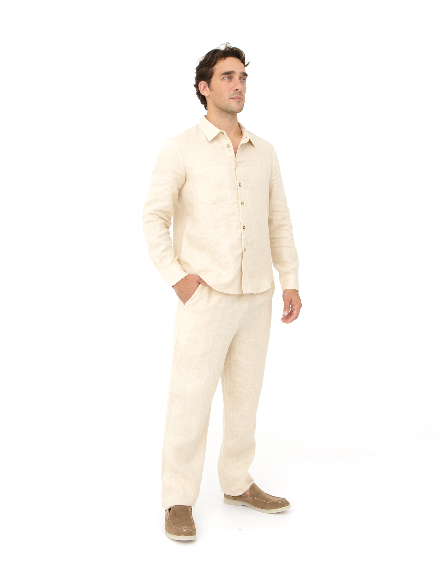 Рубашка льняная мужская 606 молочная