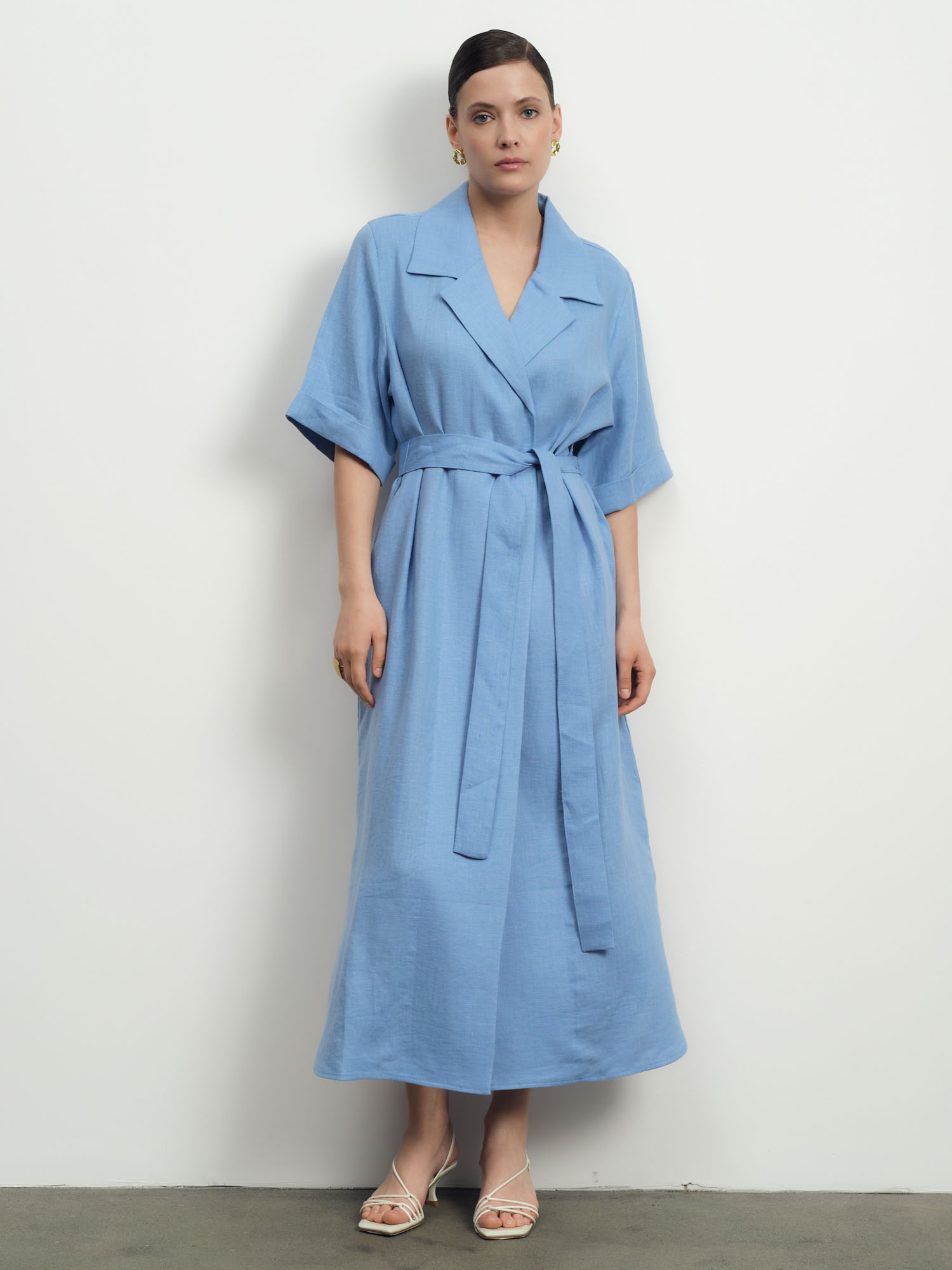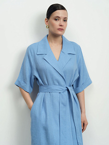 Платье миди длины с запахом и свободным силуэтом. Короткие рукава и мягкие линии создают расслабленный и утонченный образ.