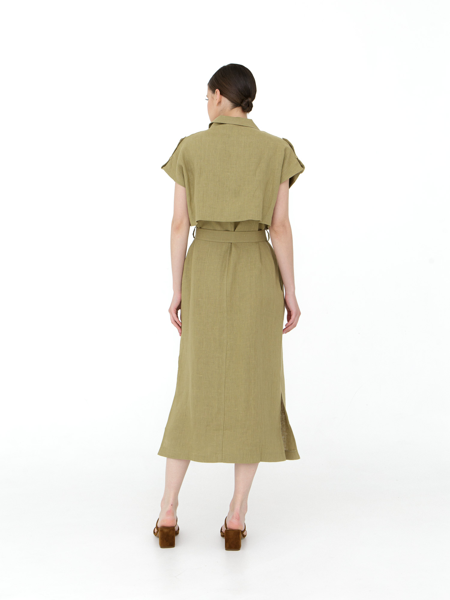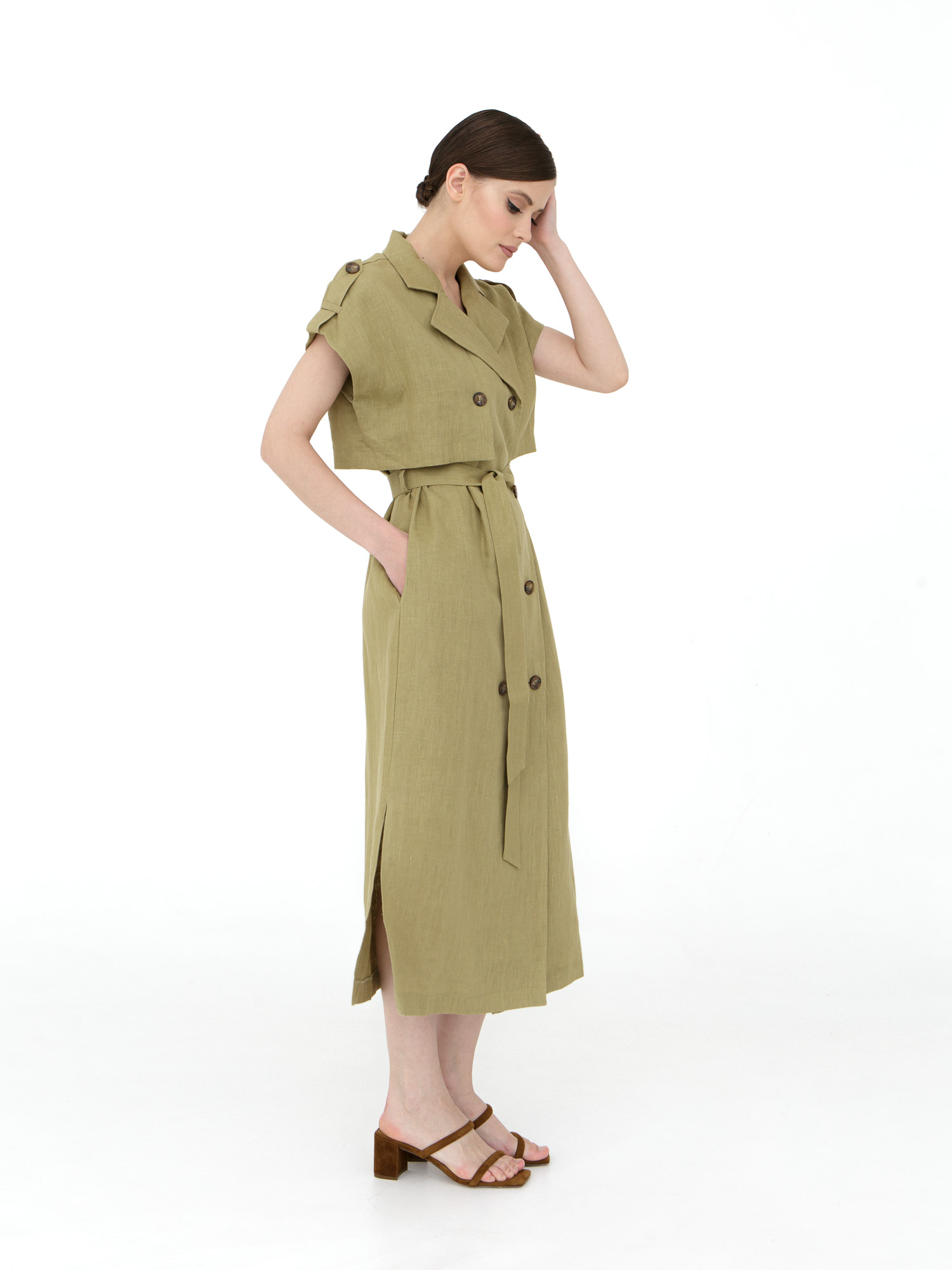 Приобретите это льняное платье прямо сейчас и откройте для себя непревзойденный комфорт натуральных материалов! Инвестируя в качественную одежду из льна, вы не только следуете модным тенденциям, но и делаете осознанный выбор в пользу долговечности и экологичности. Обновите свой гардероб этим универсальным платьем в светлом хаки, которое прослужит вам не один сезон и всегда будет выглядеть актуально.