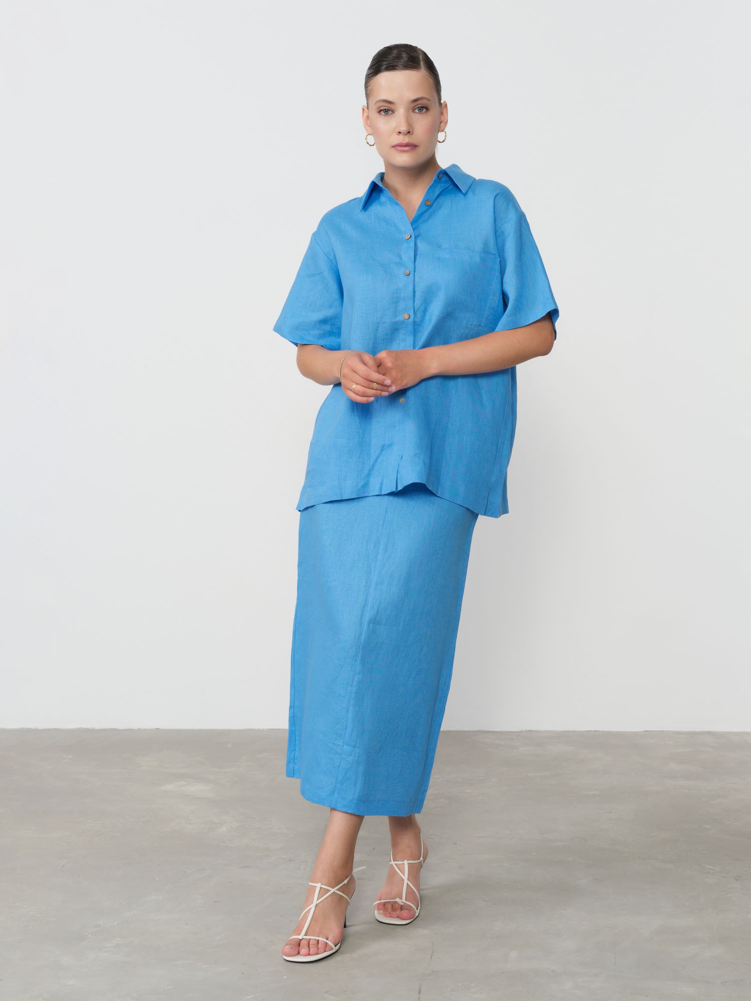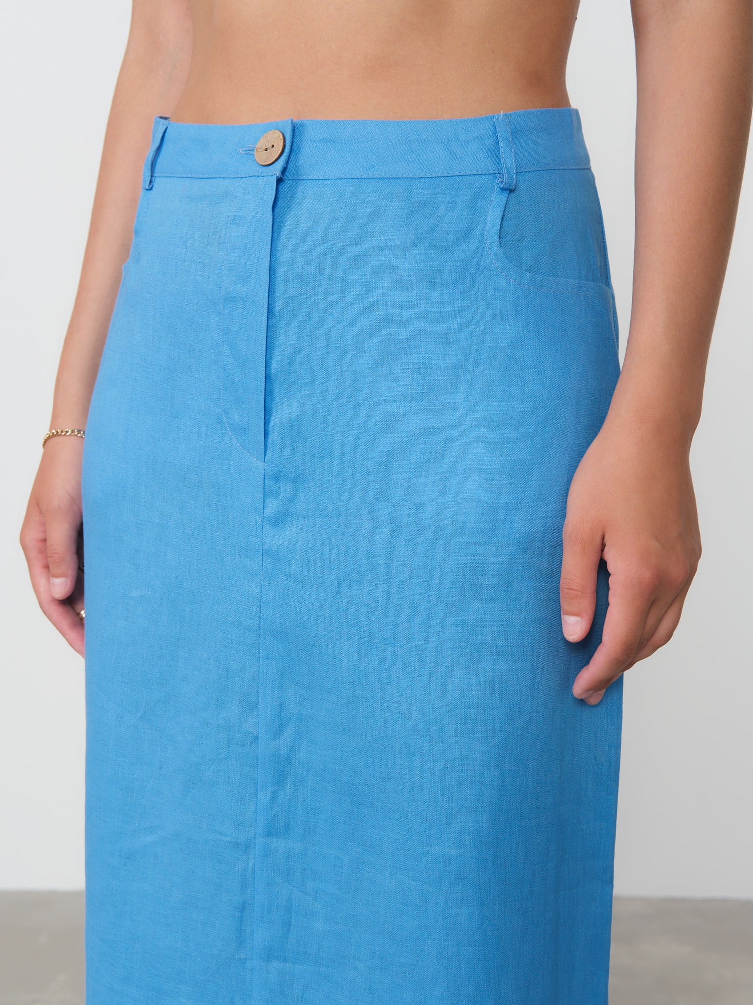 Аккуратная посадка по талии, задний разрез для свободы движения, чистые швы, лёгкая фактура ткани, удобная посадка.