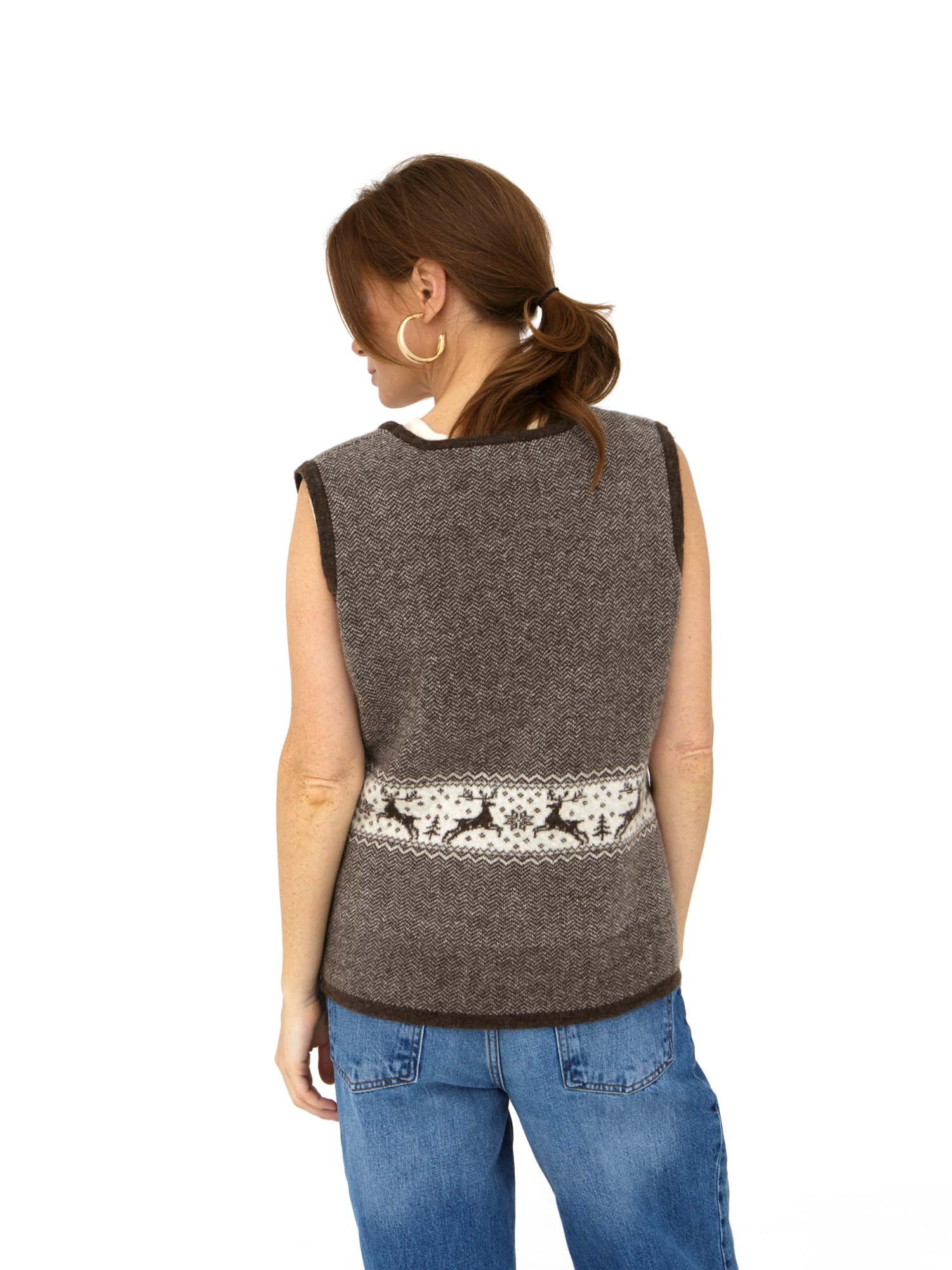 Жилет из 100% шерсти на замке 12W07001 c рисунком коричневый